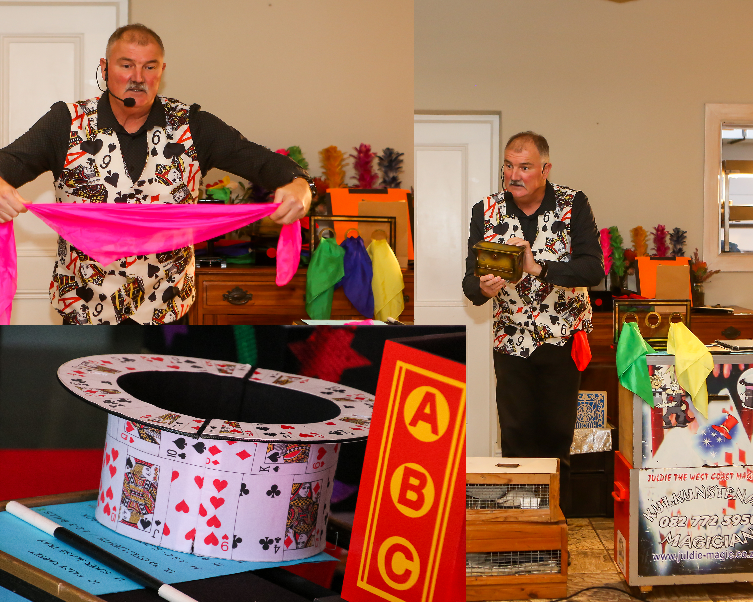 With over 47 years of enchanting audiences, Juldie is a seasoned magician specializing in captivating party tricks for children’s events and mesmerizing illusions for adult shows. Based on the West Coast, Juldie travels across South Africa, bringing his magical expertise to life. His performances are a blend of charm, wonder, and skill, ensuring a magical experience for all ages.